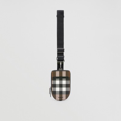 Funda bandolera para móvil en tejido a cuadros y piel (Marrón Abedul Oscuro) - Hombre | Burberry® oficial
