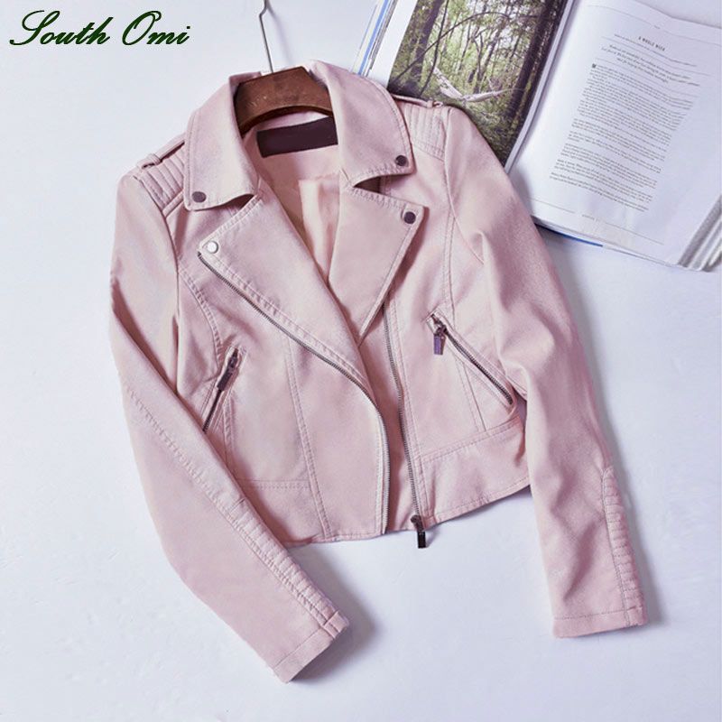 Compra Venta Al Por Mayor 2016 Chaquetas De Cuero Rosa Negro Chaqueta De Motocicleta PU Blazer Blazer Abrigo Cremallera Para Bombarderas Blouson Cuir Increíble Pastel Barato | Entrega Rápida Y Calidad | Es.Dhgate
