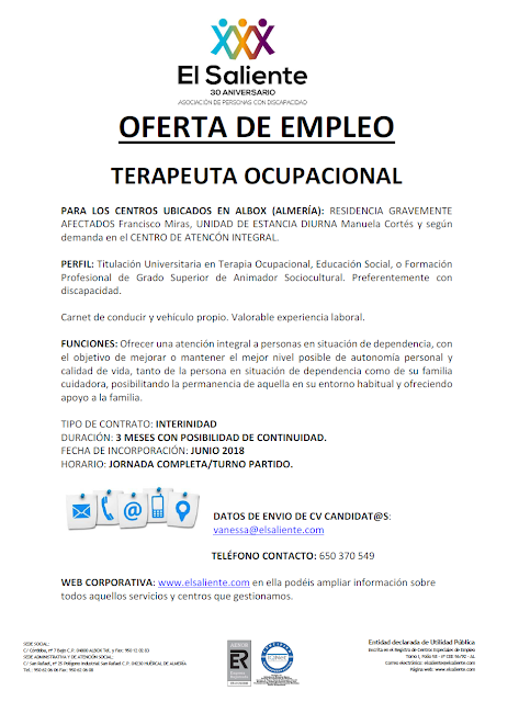 ORIENTA SUE: Oferta de empleo: Terapeuta ocupacional