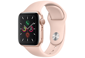 Apple Watch Series 5, Chip W3, 40 mm, GPS, Caja aluminio oro, Correa deportiva rosa arena